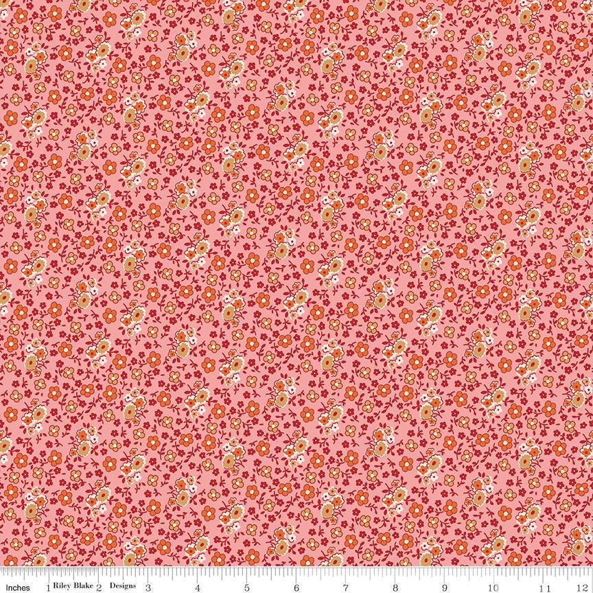 Fat Quarter, Coral Red Bouquet Designer Quilting Cotton, Autumn Collection by Lori Holt for Riley Blake Designs